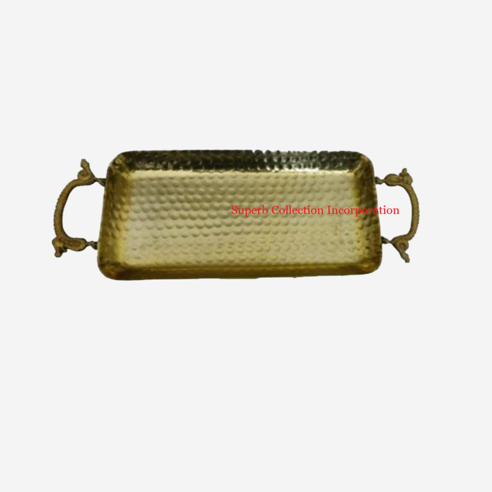Bandeja de Metal con Forma Personalizada de Alta Calidad, Bandeja Decorativa con Mango Dorado al Mejor Precio, Diseño Único para Mesa de Casa