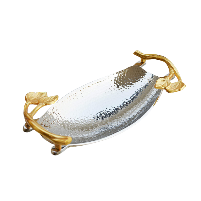 Bandeja de servicio de metal con diseño único para bodas y eventos, decoración de mesa, plato de hojas, bandeja para ensaladas