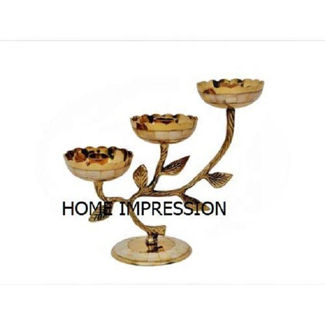 Cuenco con diseño de flores de metal de diseño único, forma redonda, logotipo personalizado disponible, Color dorado, vajilla pulida brillante, suministros para cuencos
