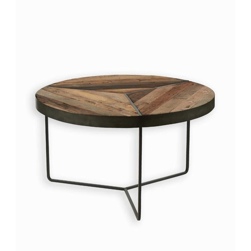 Mesa de Centro Redonda de Metal de Diseño Único con Acabado Blanco para Sala de Estar, Mueble Decorativo con Superficie de Madera