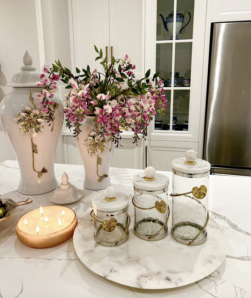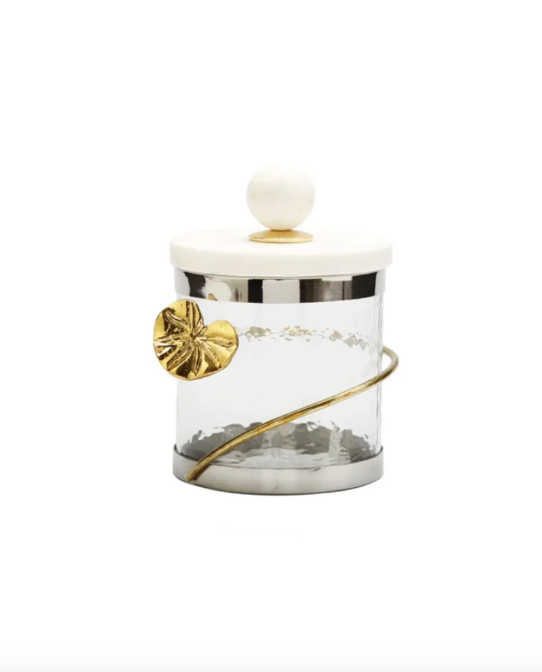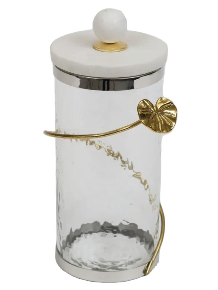Recipiente de Vidrio Hermético de Diseño Único, Moderno y Clásico, Hecho a Mano, con Tapa Abatible, Acabado Martillado de Latón Dorado