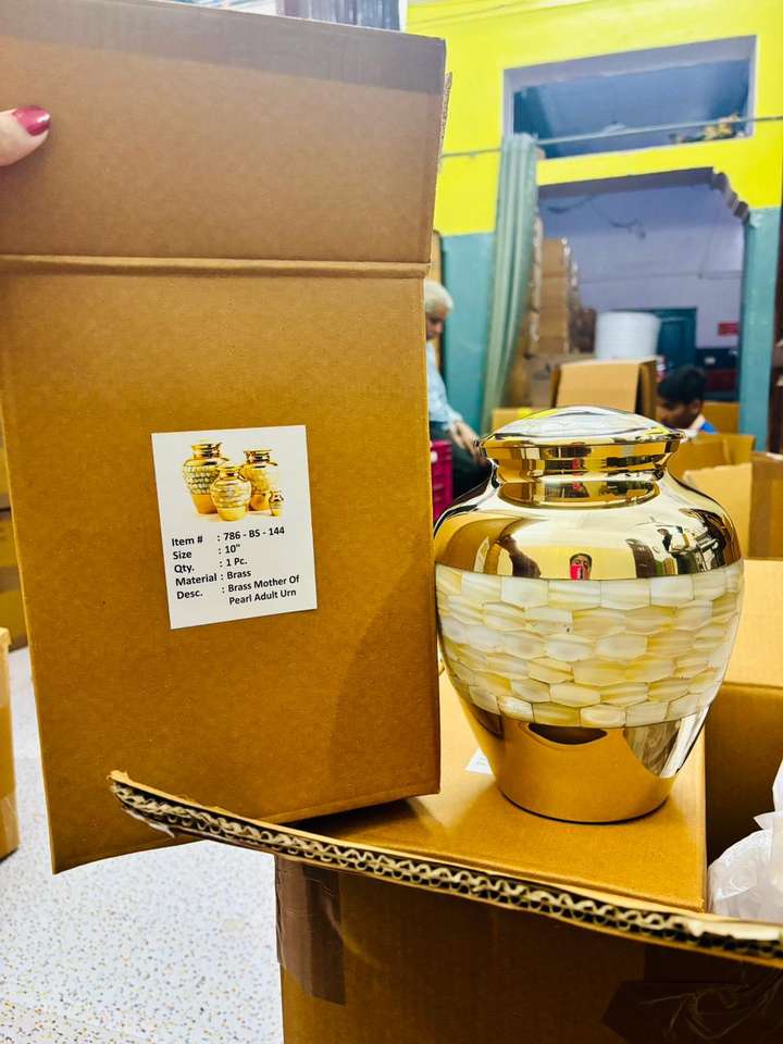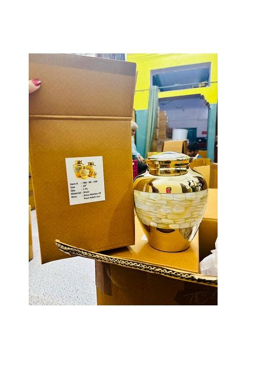 Urna Funeraria de Latón Macizo de Diseño Único y Estilo Moderno Americano, 100% Hecha a Mano, para Adultos, con Capacidad de 220 Pulgadas Cúbicas