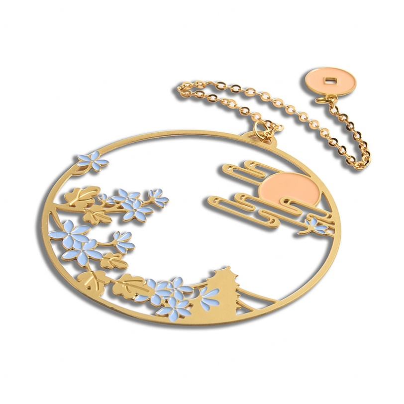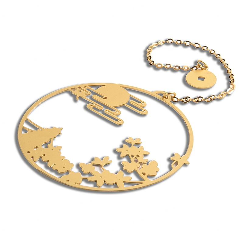 Marcapáginas Metálico Dorado con Diseño Hueco Personalizado por Sublimación, con Colgante, Diseño Único Promocional