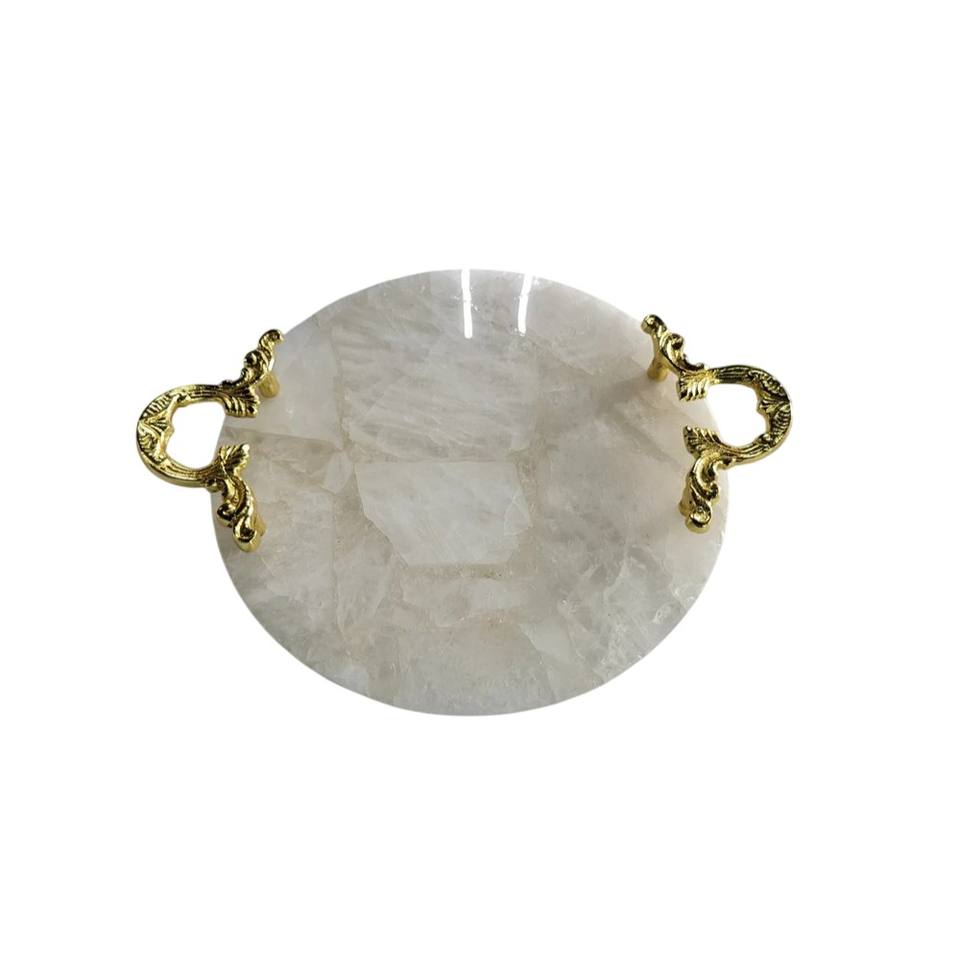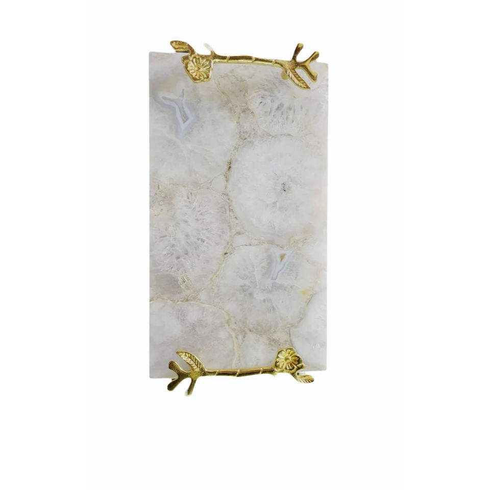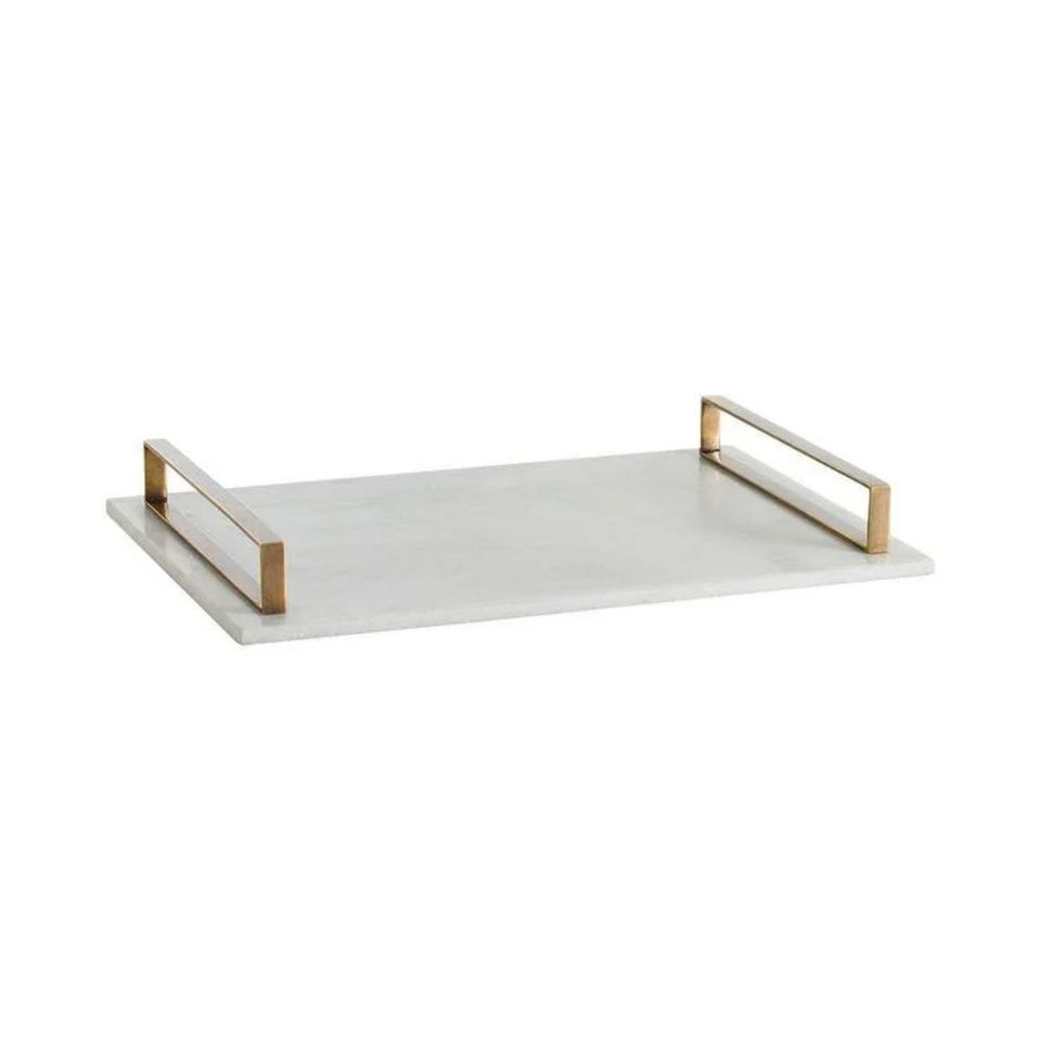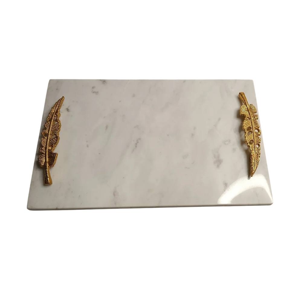 Bandeja de Servir Decorativa Rectangular de Mármol Blanco con Diseño Único, Asas de Metal Dorado, Ecológica, para Decoración del Hogar y Bodas, Precio Bajo