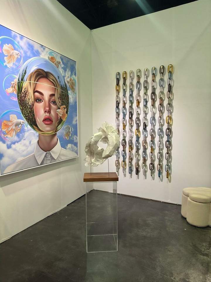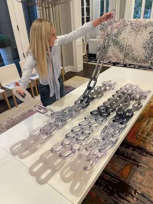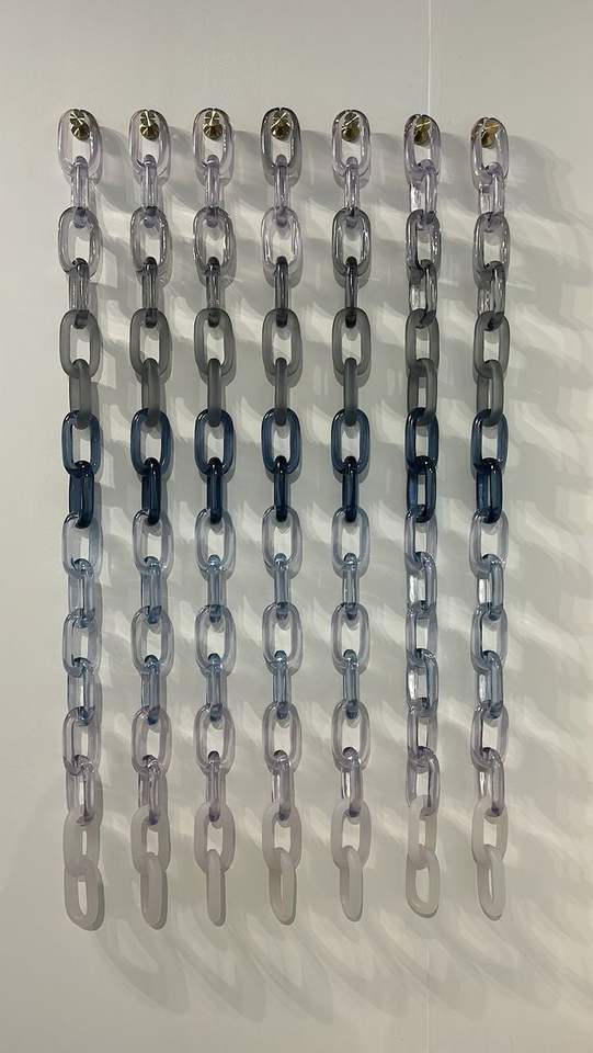 Escultura de pared con cadena de eslabones de resina de diseño único, degradado de color, acrílico, decoración de arte interior para sala de estar o pasillo.