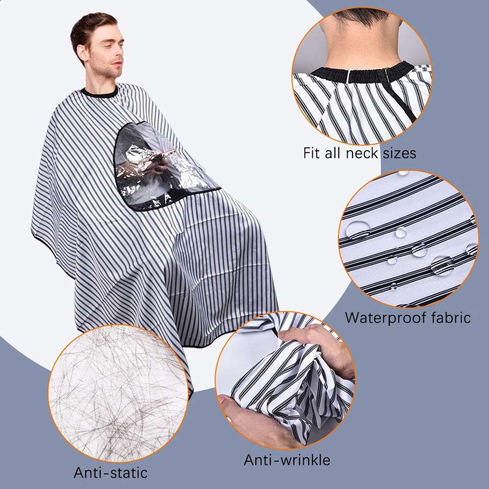 Delantales de salón de diseño único Baberos de peluquero transparentes frontales para uso móvil Resistente al agua, capas de corte de pelo lavables a máquina