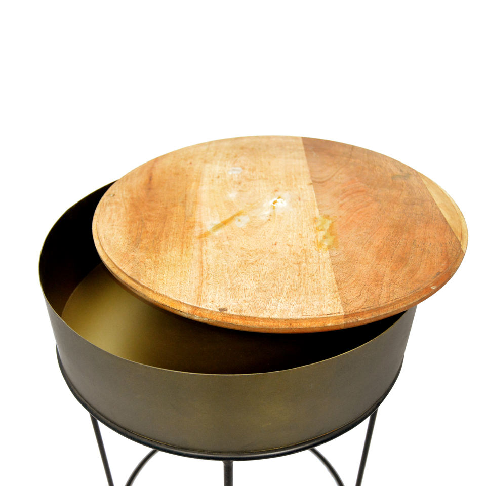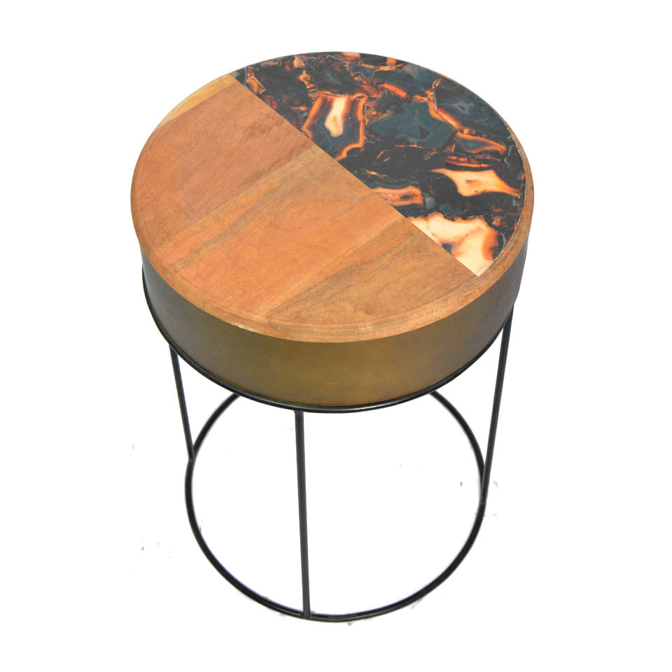 Mesa de centro redonda de madera de diseño moderno con marco de metal Mesa auxiliar única para uso doméstico sala de estar