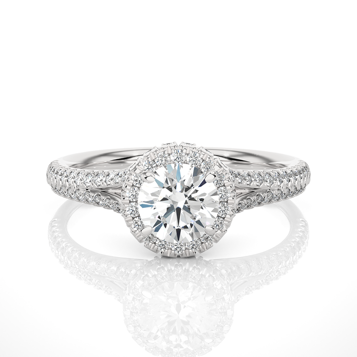 Design:Split Shank Half Eternity Halo Diamond Ring