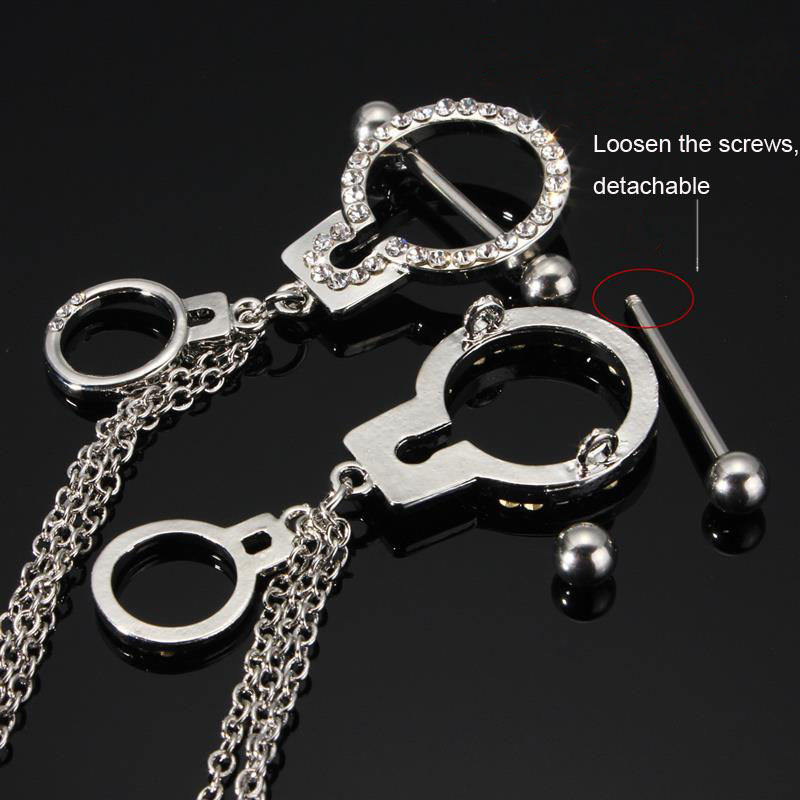 Joyería de Acero Inoxidable con Diseño Único, Collar con Colgante de Esposas Pequeñas, Cadena para el Pecho, Anillos para Pezones para Mujer