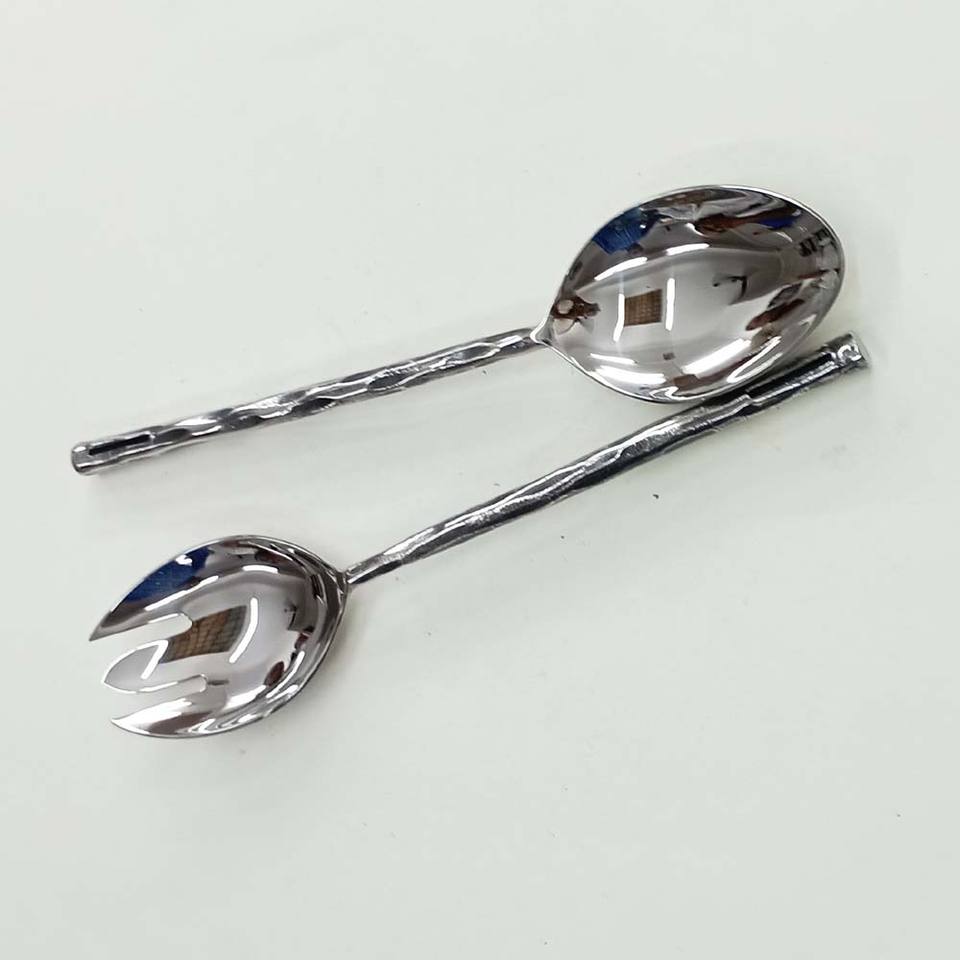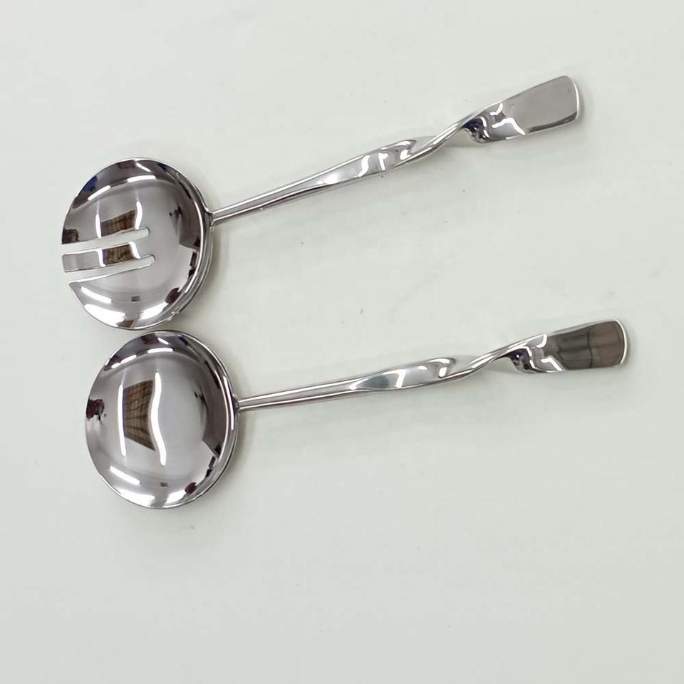 Juego de cucharas y tenedores plateados de acero inoxidable, diseño único, con mango redondo, modernos, para servir ensaladas