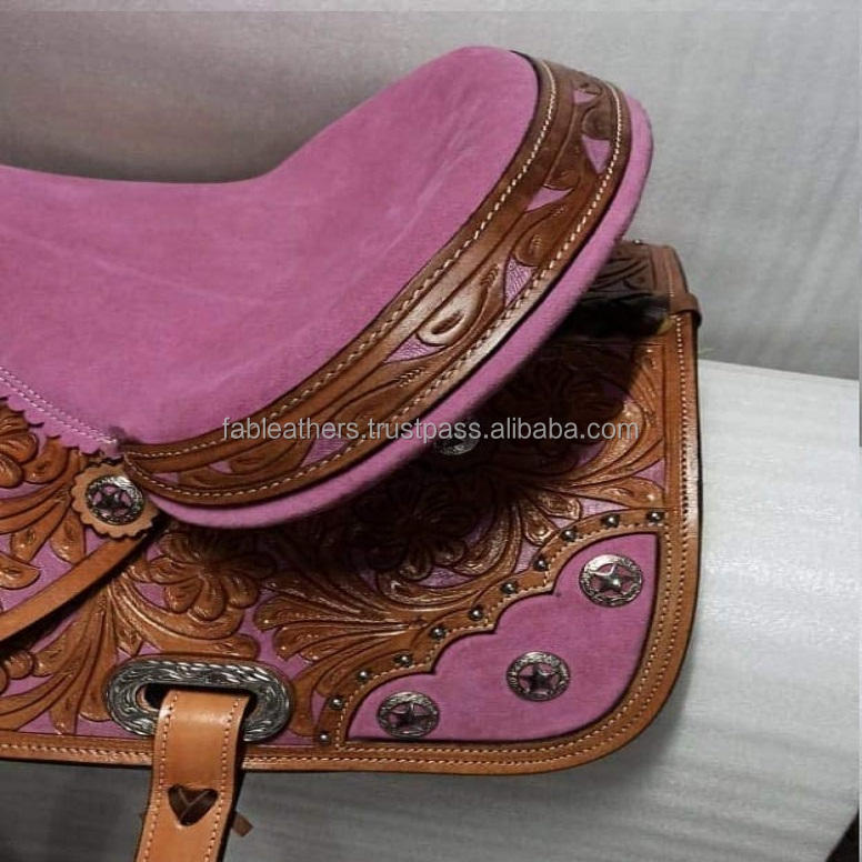 Diseño único Vintage Western Barrel Racing Saddle Pleasure Trail Adult Horse Saddle Western Trail Horse Saddle con multicolor
