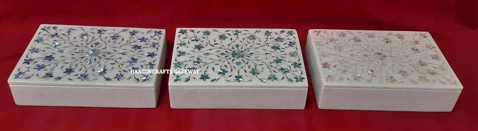 Joyero con incrustaciones de forma Rectangular de mármol blanco de diseño único para decoración de hogar y oficina y caja de propósito de regalo de boda