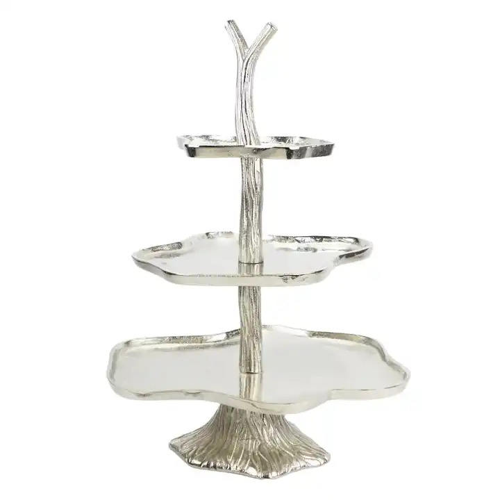 Diseño único con soporte de pastel de Metal de 3 niveles de cristal, soportes de pastel de pastelería chapados en plata para decoración de fiestas y bodas hechos a mano