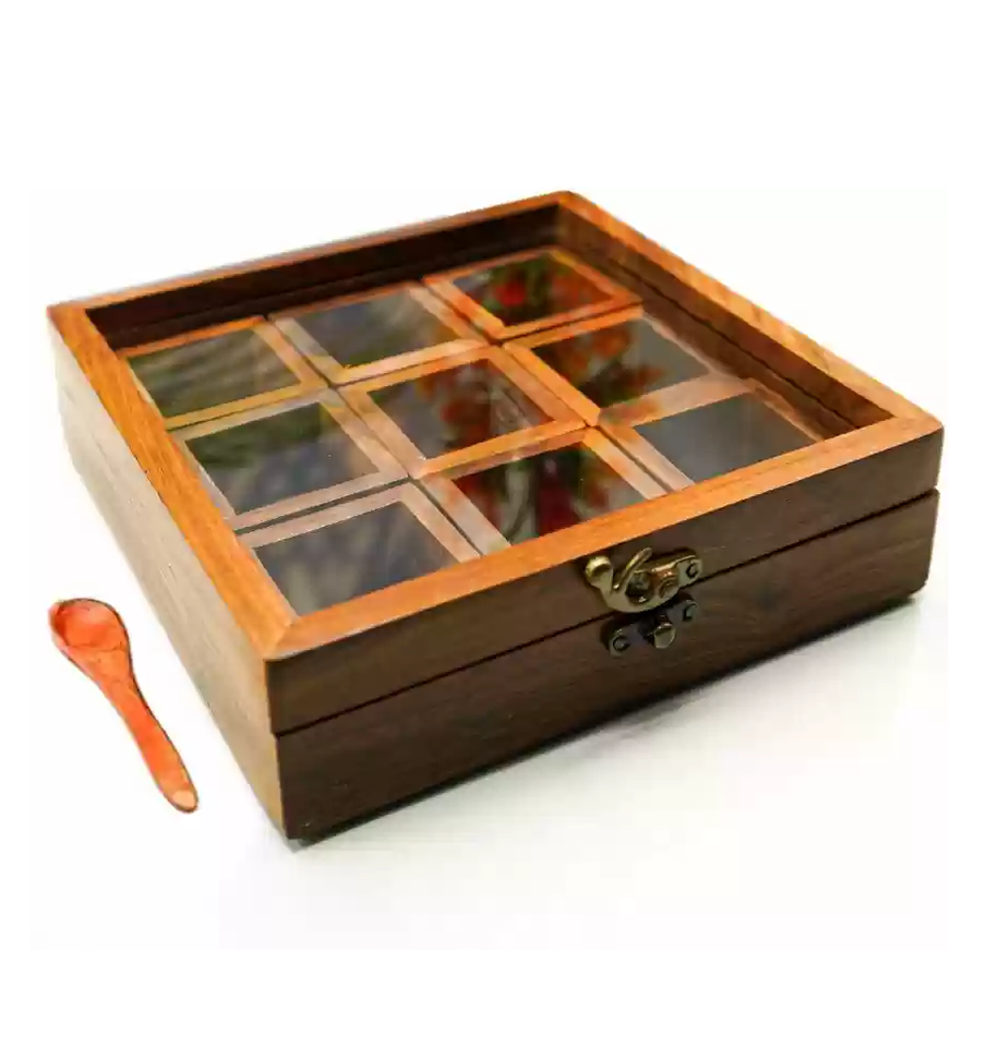Caja de almacenamiento de especias de madera de diseño único Caja de café de diseño hecho a mano de excelente calidad Producto más vendido