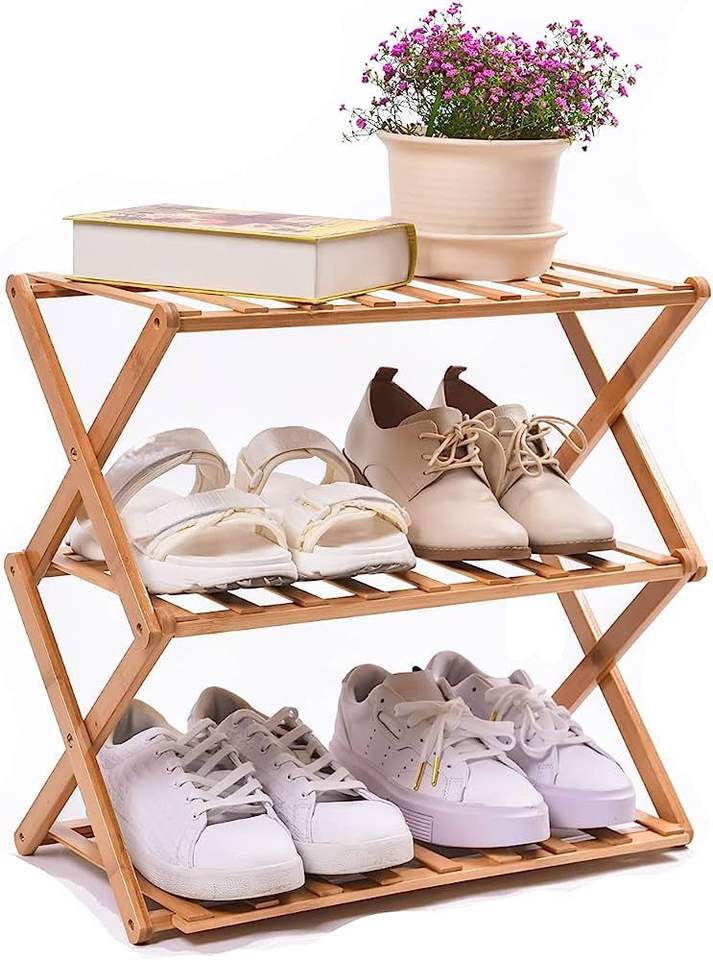 Organizador de zapatos de madera de diseño único para la sala de estar con patrón decorativo y base estable