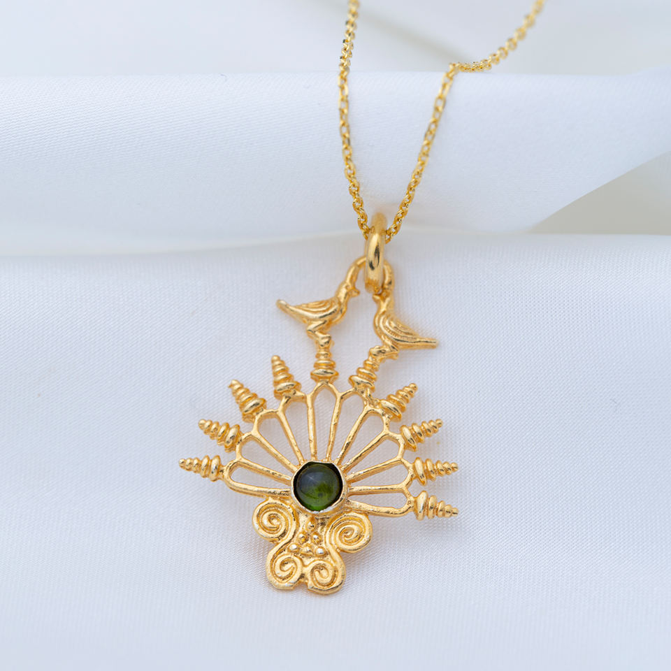 Collar de plata de ley 925 con diseño único de pájaro, piedra verde, chapado en oro de 22k, diseño Vintage, joyería