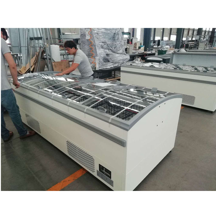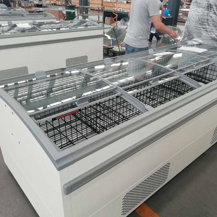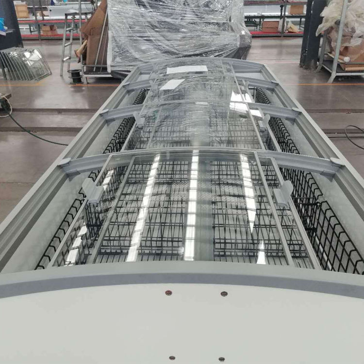 Nombre del producto:Congelador horizontal enchufable con puertas de vidrio abiertas y servicio hacia arriba y hacia abajo en dos lados