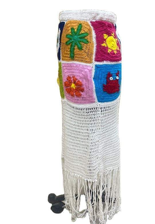 Único diseñador Mano crochet multicolor parche trabajo falda con motivos hechos a mano crochet playa falda