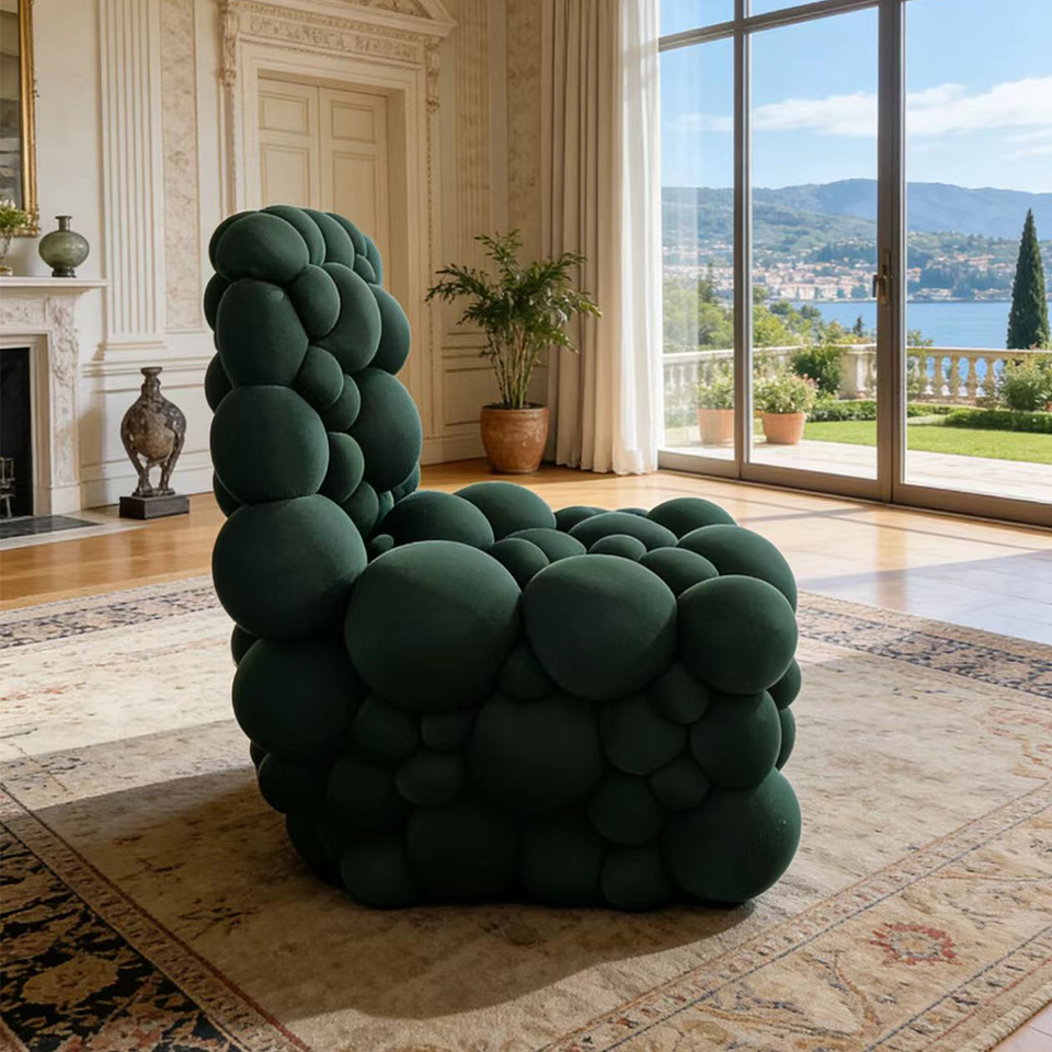 Sofá Individual Esférico de Diseño Único, Sillón Verde Tapizado con Mechones, para Dormitorio, Lectura, Club, Decorativo