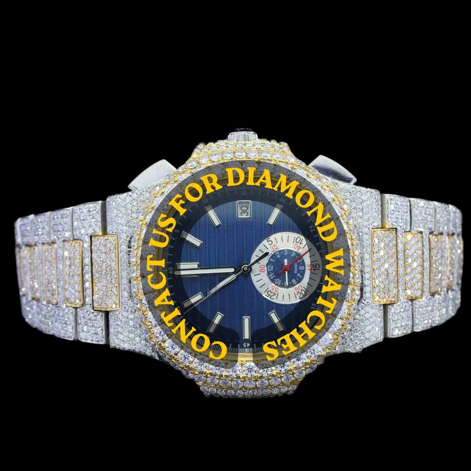 Reloj de Diseño Exclusivo con Cronógrafo, Esfera de Cristal, Oro Blanco, Completamente Adornado con Piedras, Estilo Hip Hop, Cuarzo, Fecha Automática, Moda, Negocios, Nuevo y Personalizado