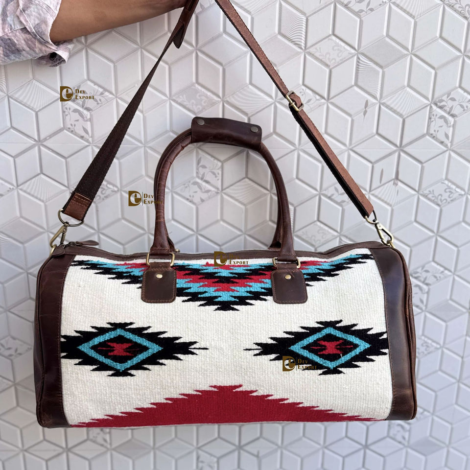 Bolsos de Viaje Grandes de Cuero Genuino con Diseño Único Estilo Vintage Azteca, Bolsos de Lona con Patrón Occidental, Multiusos