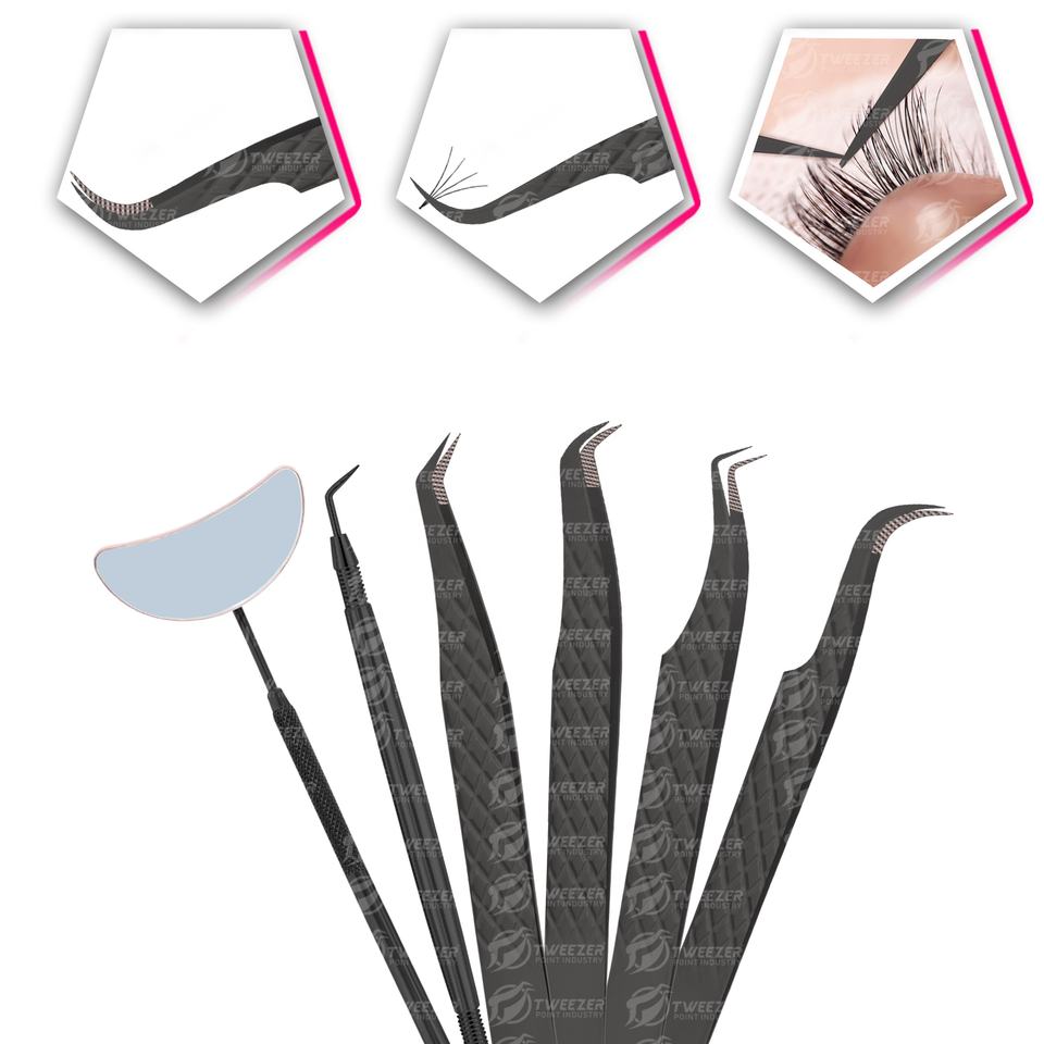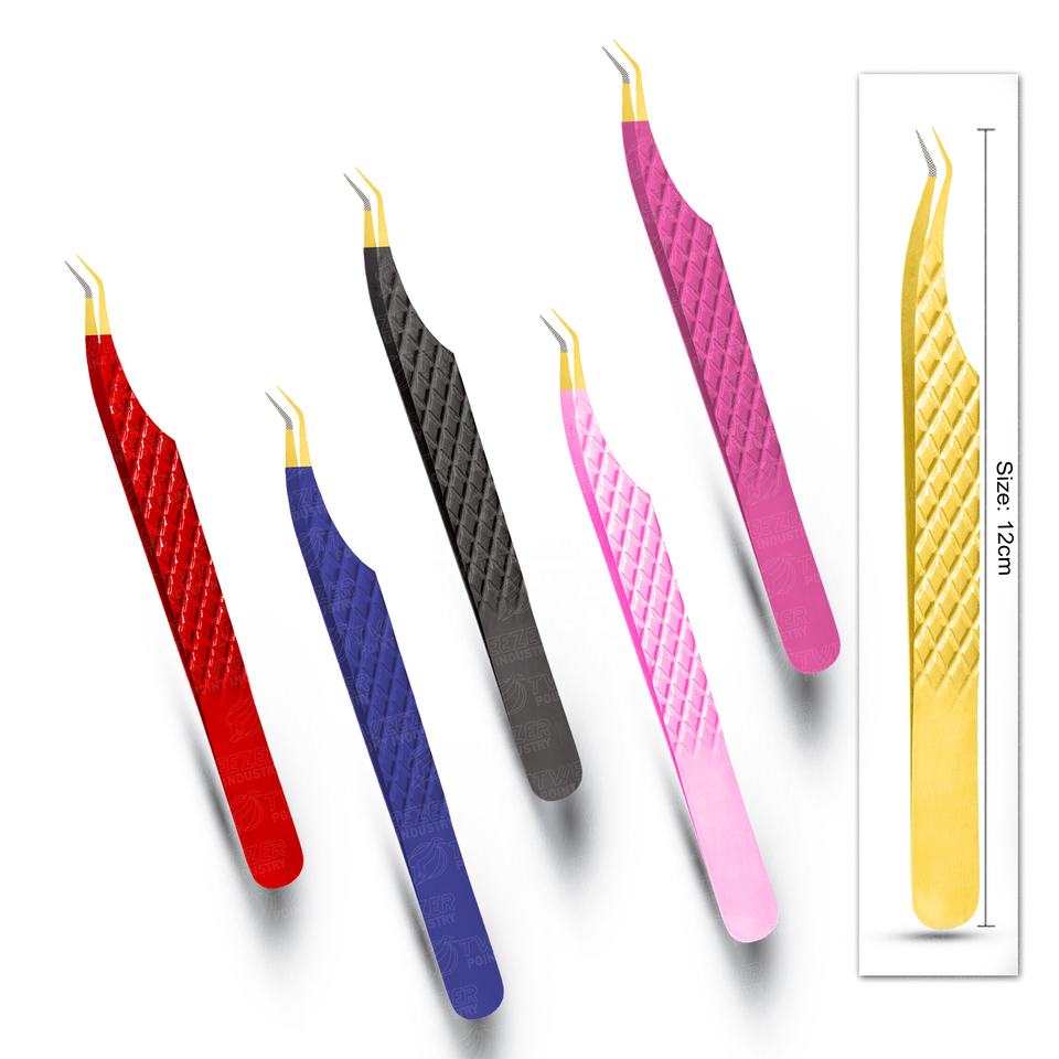 Diseño de diamante único peso ligero para reducir la fatiga de las manos pinzas de pestañas con ángulos dobles Material de acero inoxidable