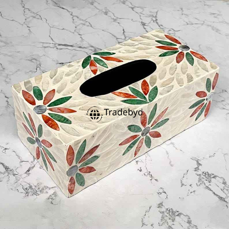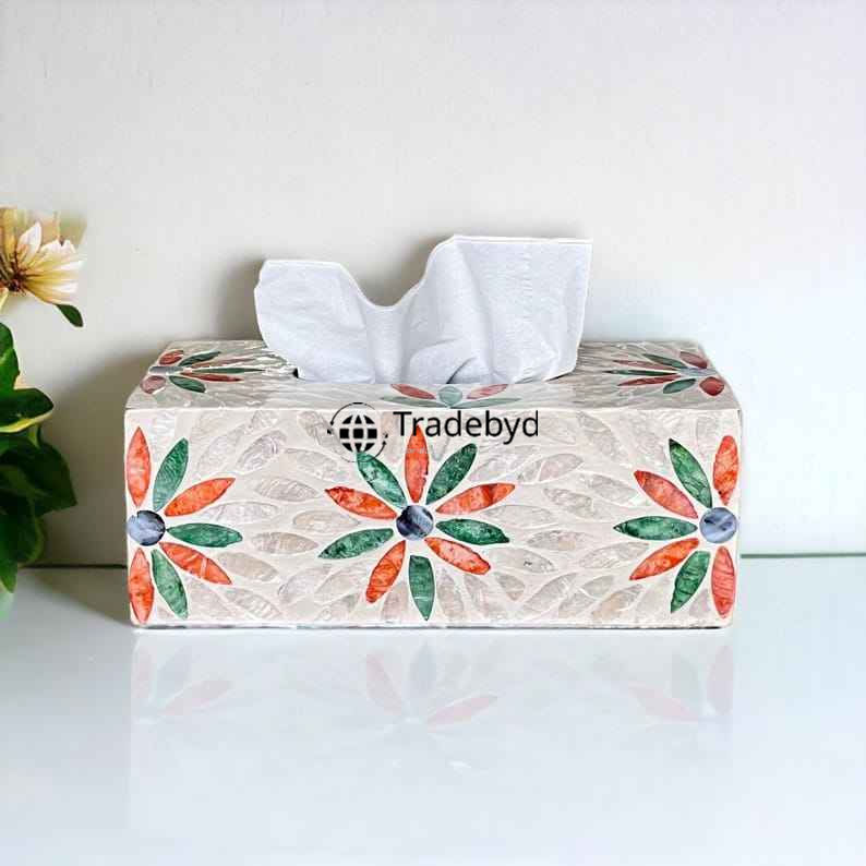 Caja y Soporte para Pañuelos Decorativos de Lujo Hechos a Mano con Incrustaciones de Hueso Ecológicas y Únicas para Decoración del Hogar y Baño Tradebyd