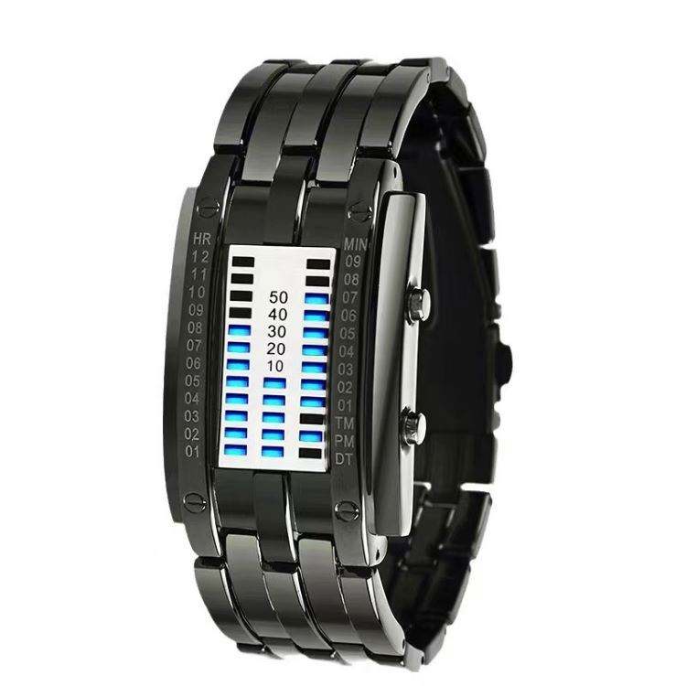 Único electrónico Digital LED Reloj binario portátil hombres reloj mujeres Acero inoxidable fecha Kol saati señoras Relojes Binario