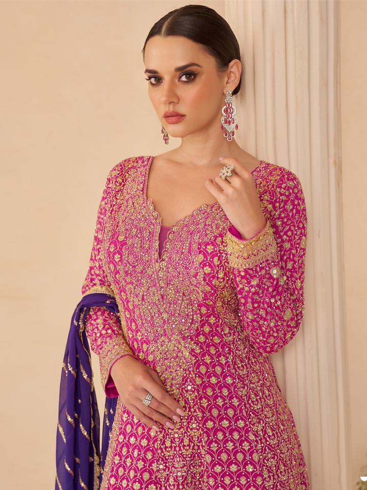 Traje de boda pakistaní único con bordado multicolor, trabajo de cutwork y khatli, y dupatta.