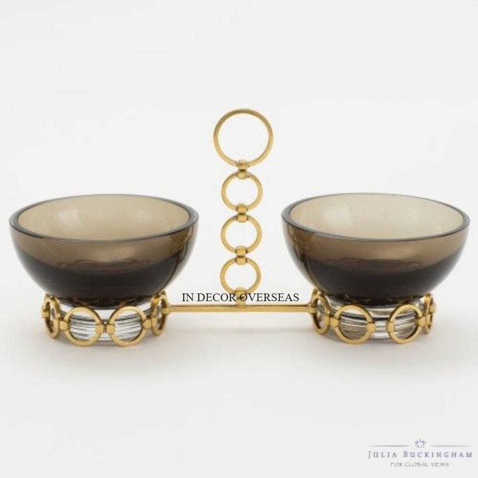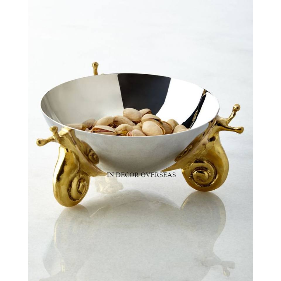Cuencos de Metal de Alta Calidad para Servir Alimentos, con Base de Metal Chapada en Oro de Diseño Único y Elegante, con Parte Superior Redonda con Recubrimiento en Polvo de Color Blanco
