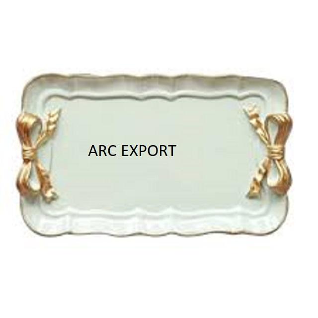 Bandeja para servir alimentos de color medio dorado y medio blanco con diseño de lujo, decoración de hojas, bandeja con 2 asas