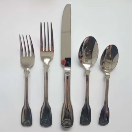 Juego de Cubiertos de Acero Inoxidable con Mango Martillado Único, Cuchara y Tenedor Plateados para Fiestas