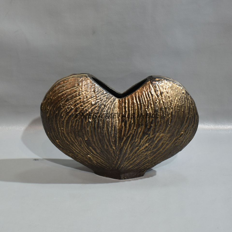 Jarrón de metal dorado negro artesanal único con diseño ondulado abstracto y detalles texturizados para decoración interior moderna