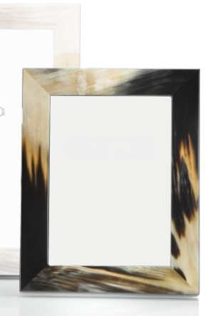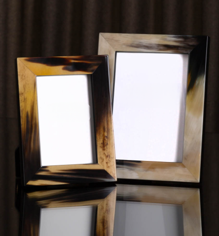 Marco de fotos de cuerno natural hecho a mano único con chipset pegado a mano y pulido a mano suave en múltiples variaciones de color terroso