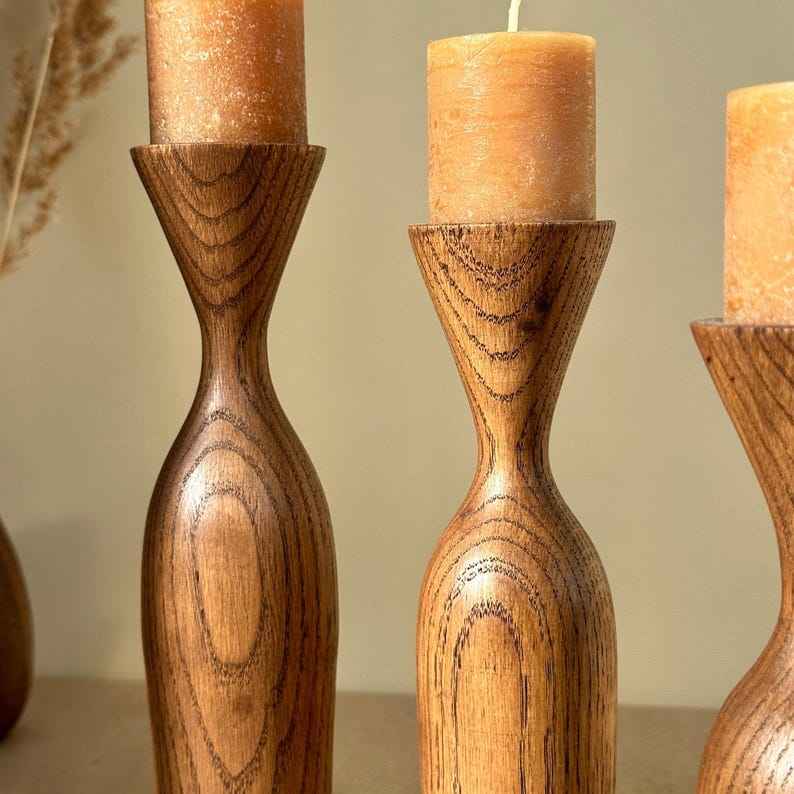 Portavelas de madera decorativo hecho a mano único, portavelas de estilo moderno de Color marrón para Decoración de mesa de boda