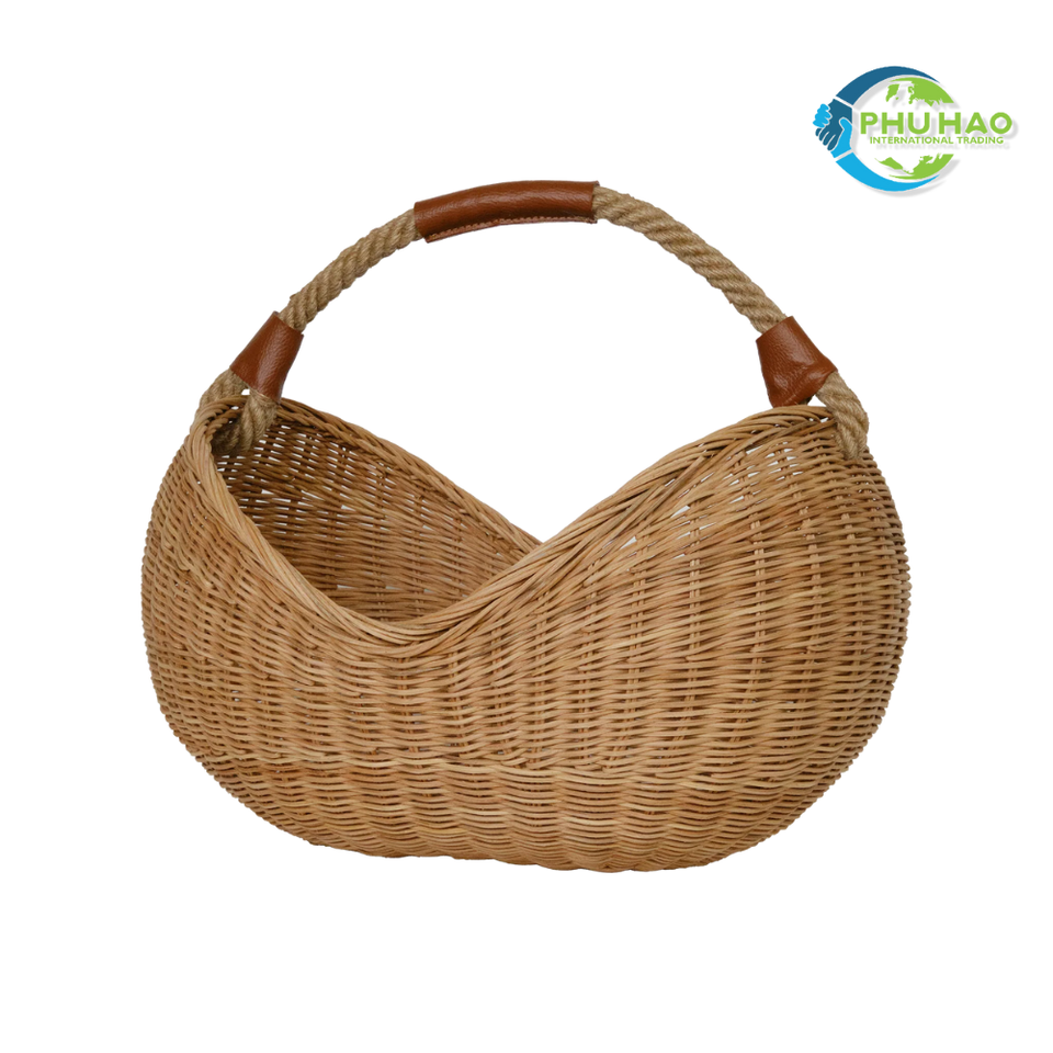 Cesta de mimbre natural tejida a mano única para picnic, cesta de flores, cesta de almacenamiento de Vietnam para regalos y actividades al aire libre
