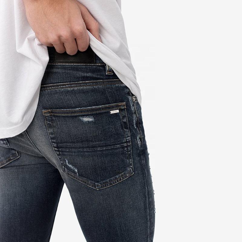 Pantalones vaqueros de hombre personalizados de alta calidad únicos, pantalones vaqueros ajustados con agujeros rasgados a la moda desgastados, pantalones de nuevo diseño