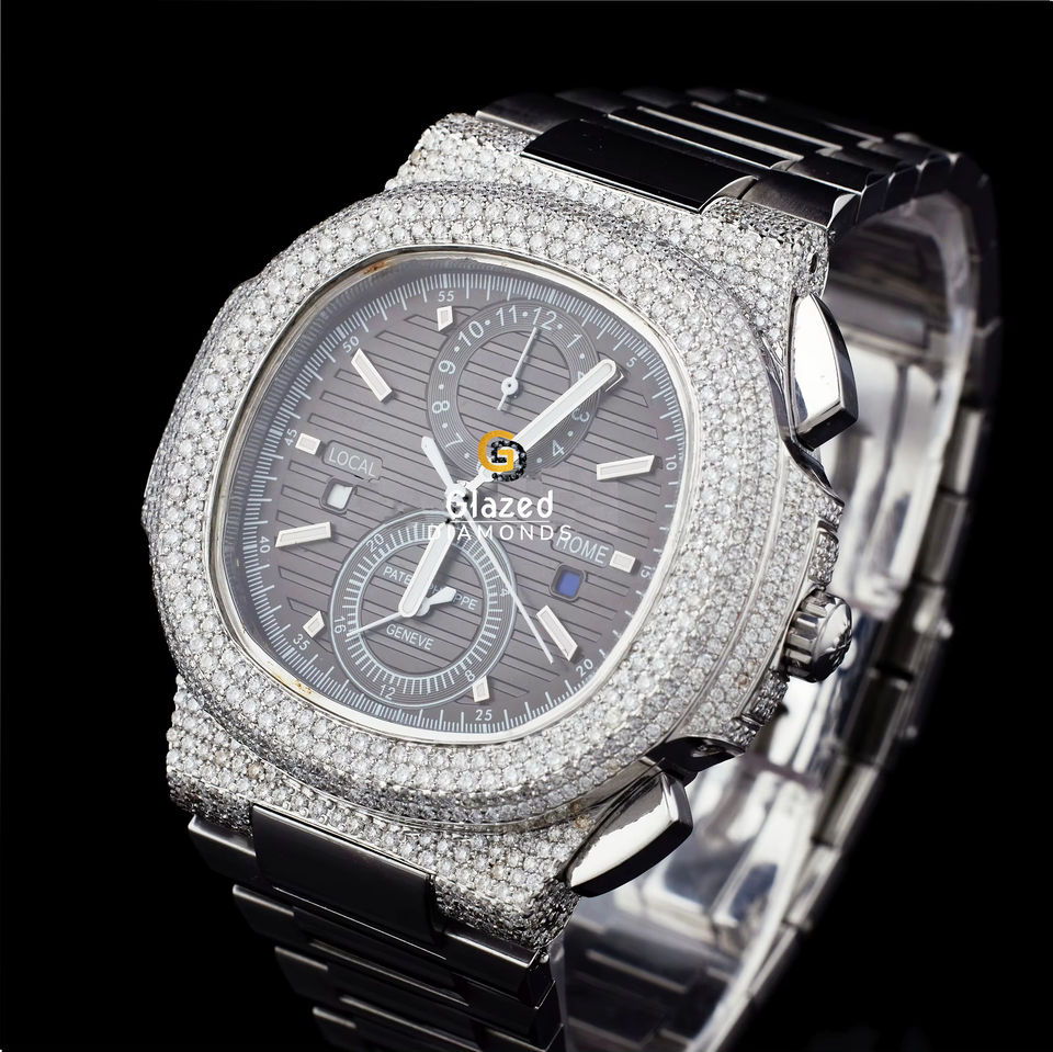 Único Hip Hop Mens Cronógrafo Moissanite Reloj En Redondo Brillante Corte Diamantes VVS Claridad Elaborado De Acero Inoxidable