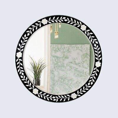 Espejo de Pared Decorativo Único Hecho a Mano en India con Incrustaciones de Hueso, Diseño Art Deco, Ligero, Moderno, Personalizable, Marco Decorativo de Alta Calidad para el Hogar