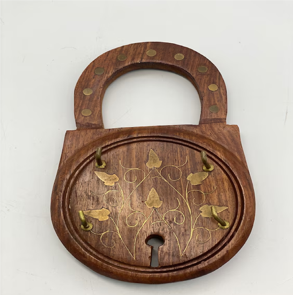 Soporte de llavero de madera con Diseño de cerradura único en madera natural para decoraciones de hogar y sala de estar, llavero de madera a precios baratos
