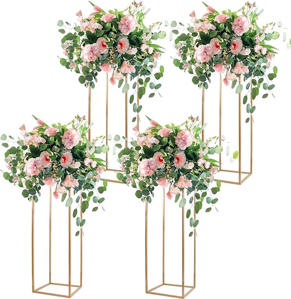 Exclusivo Soporte de Flores de Metal Dorado para Mesa de Boda, Arreglo Floral, Soporte Geométrico para Florero, Decoración