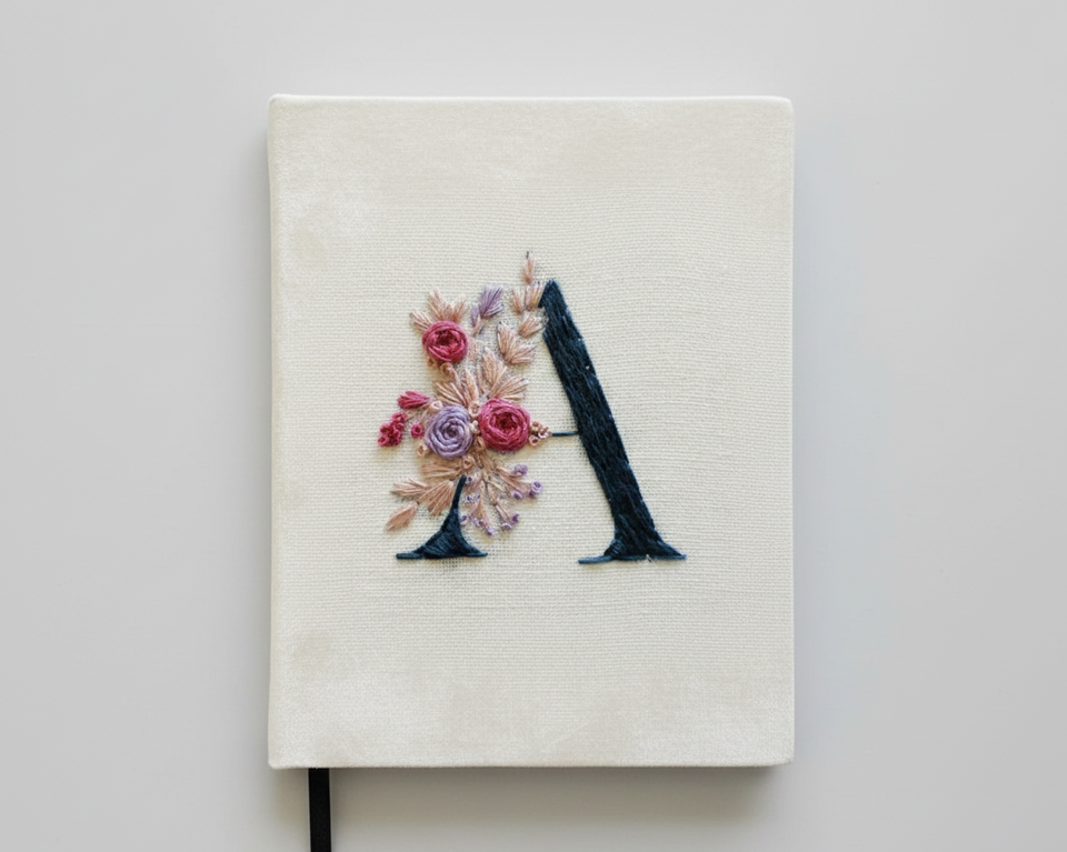 Cuaderno de Terciopelo Hecho a Mano de Lujo Único, Cubierta Bordada, Colores y Tamaños Personalizables, Diseño de Diario Escolar, Promociones de la India