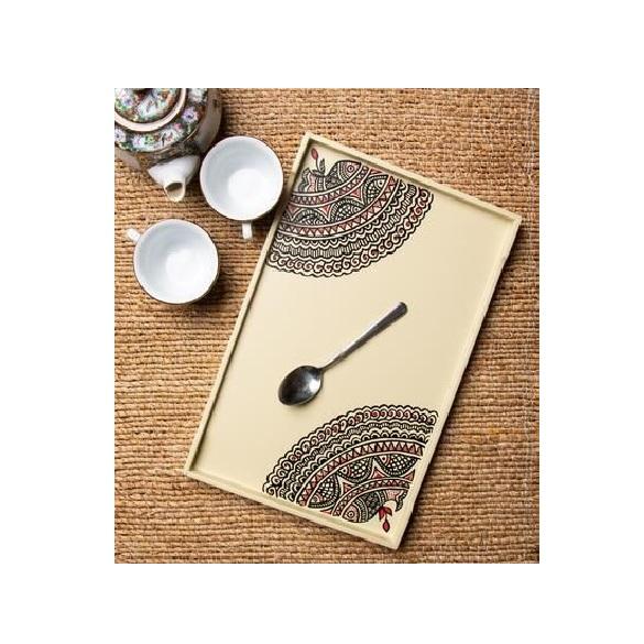 Bandeja Meena Única Pintada a Mano, Decoración India de Lujo, Madera de Acacia Ecológica, Arte Tradicional, Bandeja de Servicio Personalizable para el Hogar