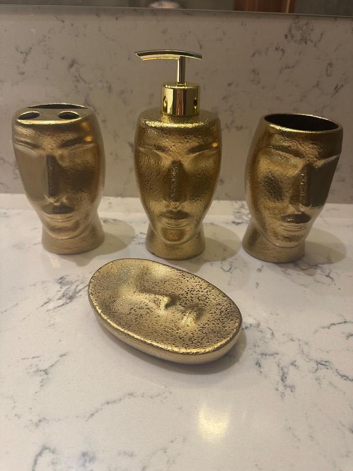 Juego de baño con diseño de cara de metal único, ideal para estilo de baño de Resort y exhibición de regalos antiguos hechos a mano de La India