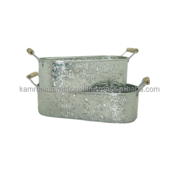 Juego de 2 macetas de flores de Metal únicas para restaurante, jardín y hogar, accesorios decorativos para macetas florales