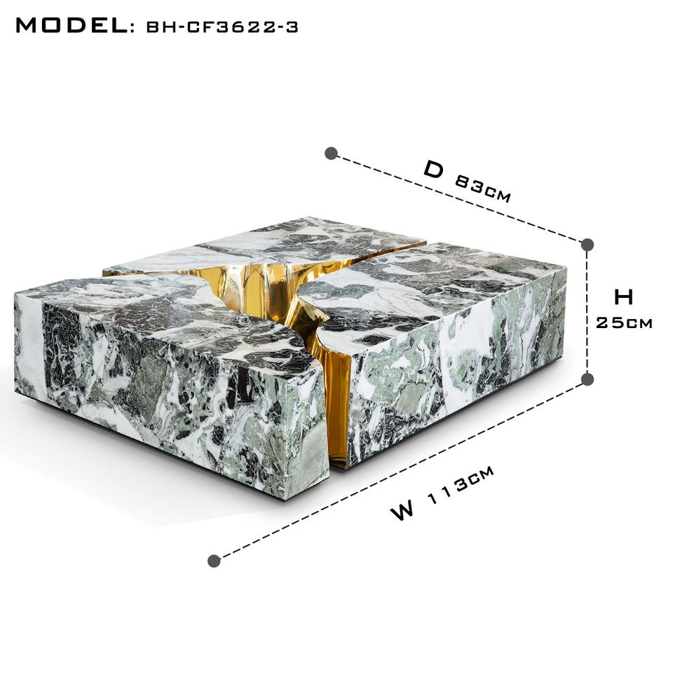 Mesa de centro con textura de mármol de diseño moderno único, mesa de centro de diseño Modular de latón pulido para sala de estar