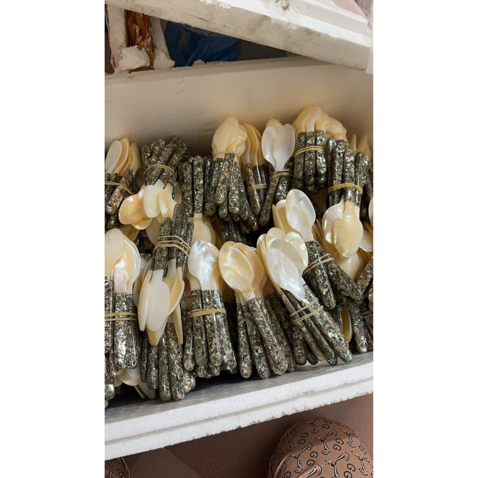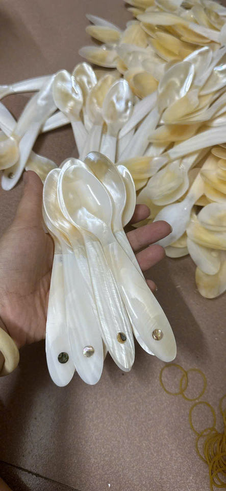 Cuchara Única de Nácar con Mango de Cerámica Colorido y Duradero, Cuchara Artesanal de Concha Marina para Caviar, Cubertería de Nácar