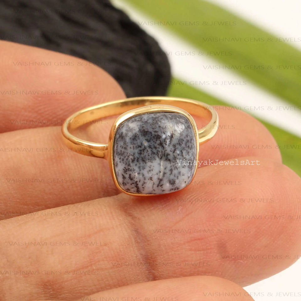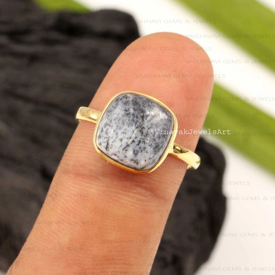 Nombre del producto:Anillo de piedras preciosas de ágata dendrítica natural