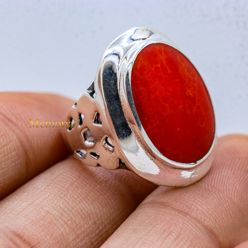 Nombre del elemento:Anillo de plata de piedras preciosas de coral natural