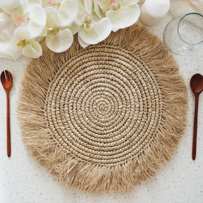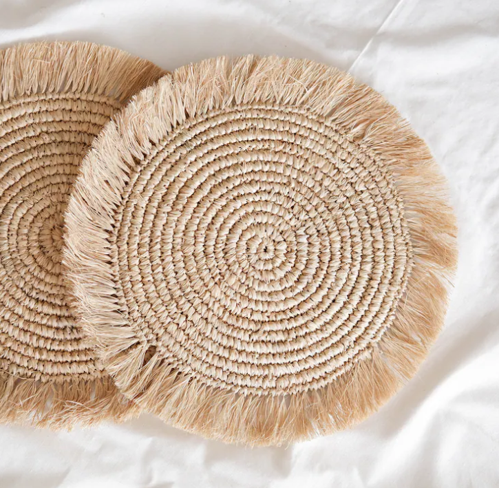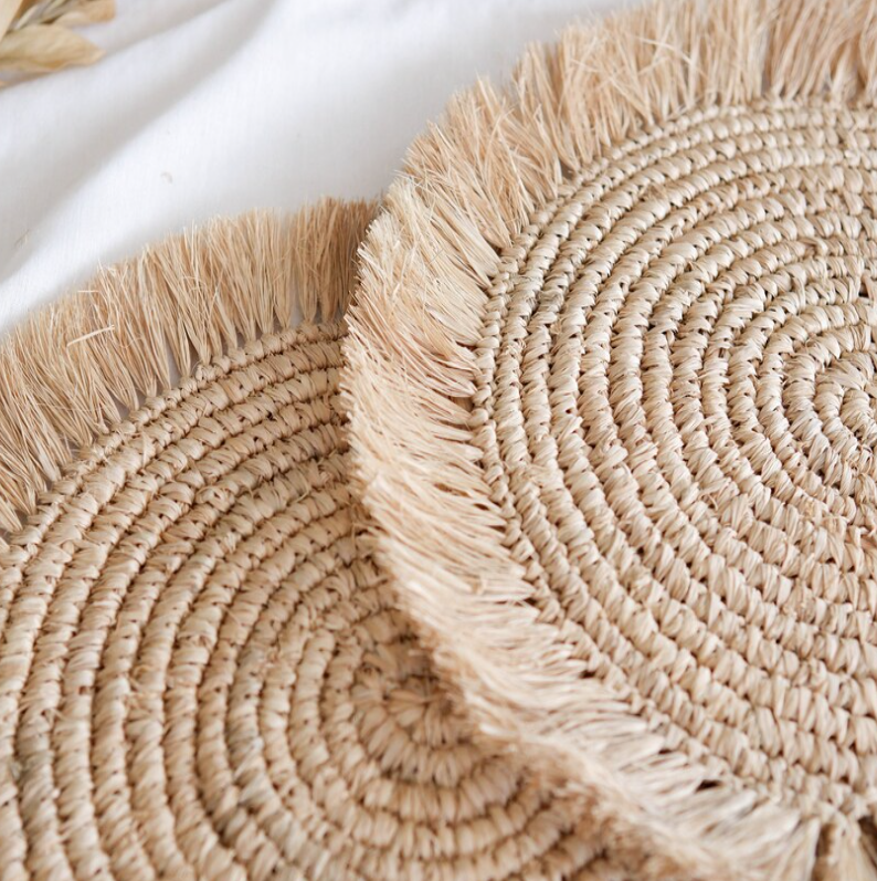 Manteles individuales redondos de rafia únicos Boho decoración de mesa de cocina 35 cm | Manteles individuales para fiesta de boda de Hotel en casa | Regalo de Navidad